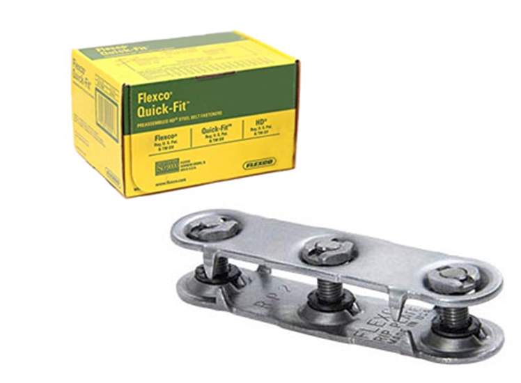 Flexco® Bolt Solid Plate Fasteners can also be used for rip repair. For jagged, lengthwise conveyor belt tears, standard Bolt Solid Plate Fasteners can be combined with three-bolt Rip Repair Fasteners. Rip Repair Fasteners can also be used to bridge “soft” spots in the belt before they become rips.  Design: Solid plate; piloted bolts with tapered tips, 2 or 3 bolt design